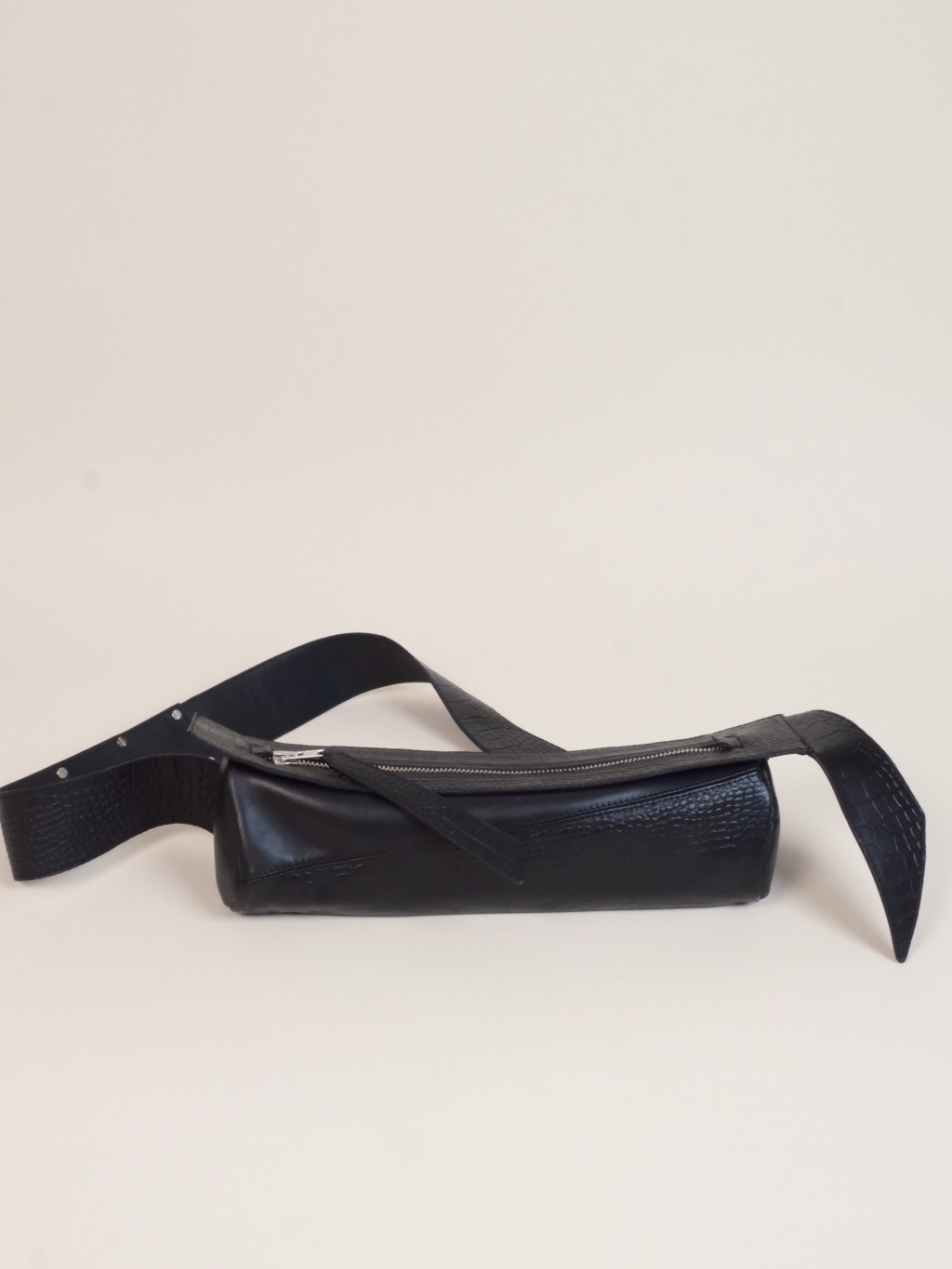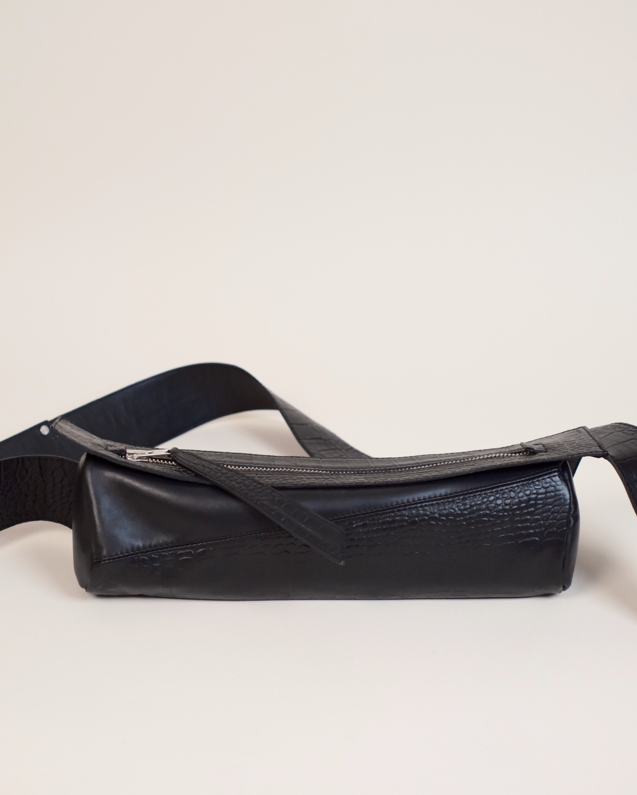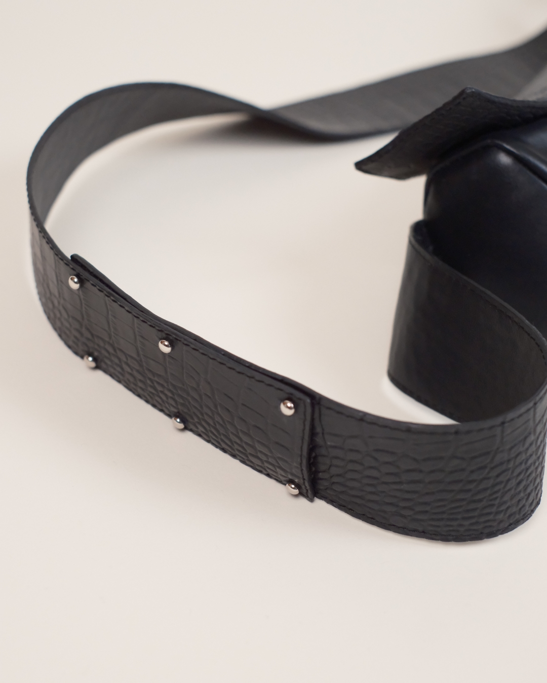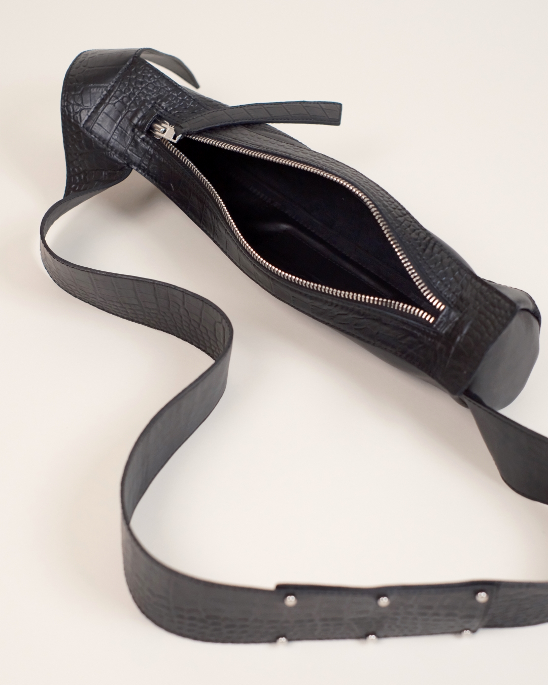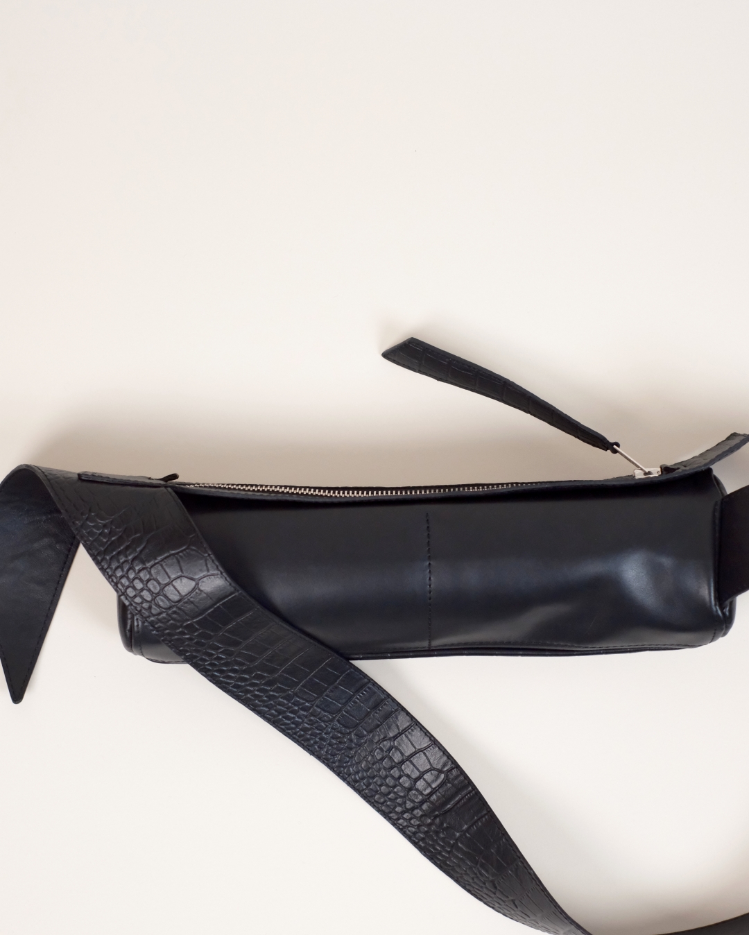 TUBA CROCÉ – czarna skórzana torebka crossbody