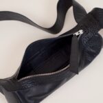 Wnętrze: główna komora z przegrodami na karty i drobiazgi. Metalowy zamek japońskiej marki YKK. Regulowany pasek do noszenia crossbody, na ramieniu lub w dłoni.